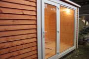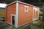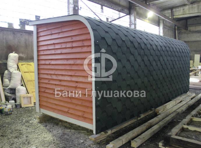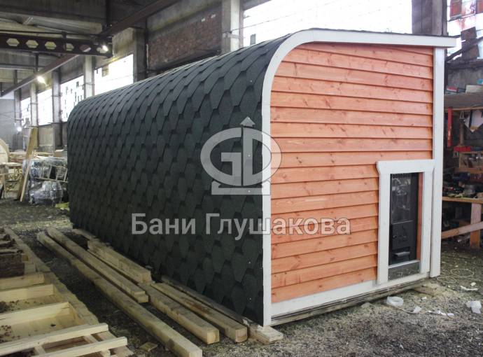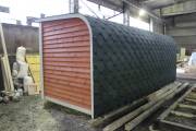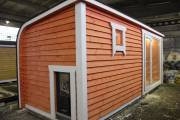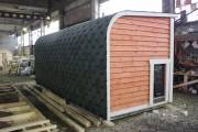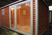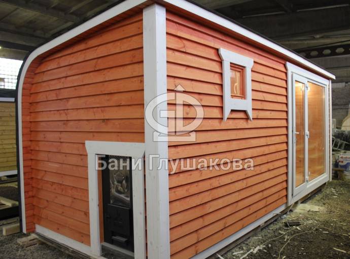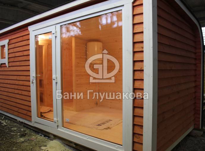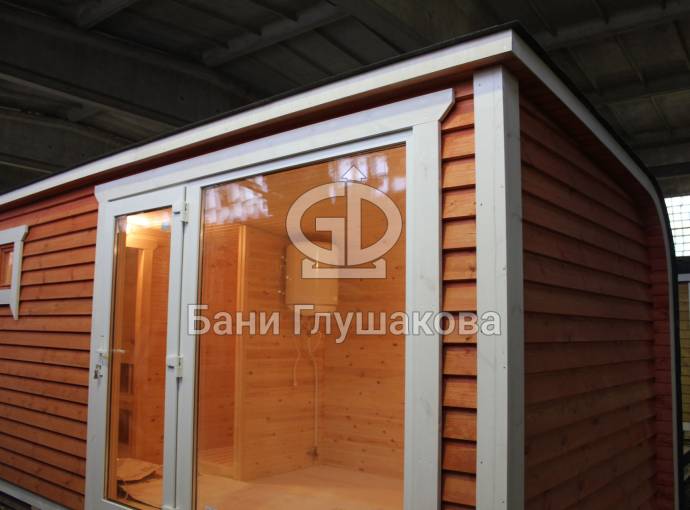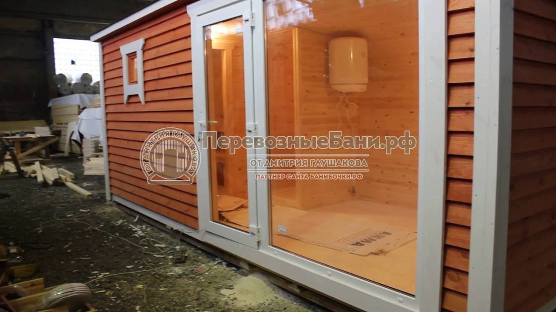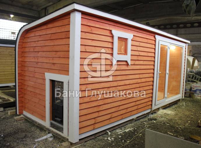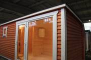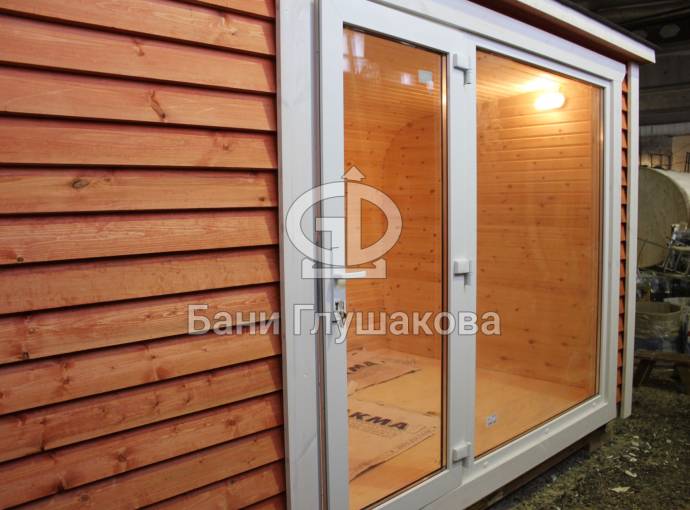 Представляем вам новинку марта 2018: готовая перевозная баня каркасной сборки, изготовленная под заказ. Это не серийная модель: заказчик попросил сделать панорамное окно (стеклопакет) в комнате отдыха. Ваше желание — закон для нас.