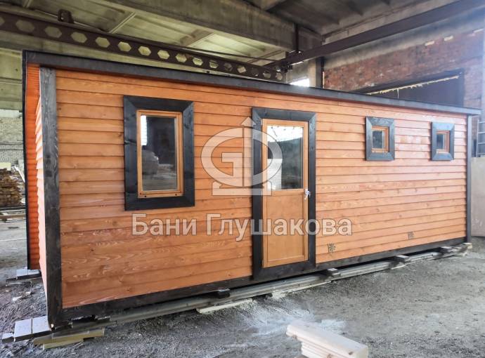Имеет максимальную длину для мобильной бани, которую можно перевезти на грузовике — больше просто не получится транспортировать.