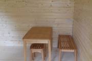 может быть привезен для вас мягкий кухонный уголок, очень удобен и вписывается в размеры бани, стоимость от 12-15 тр (уточняйте у менеджеров)